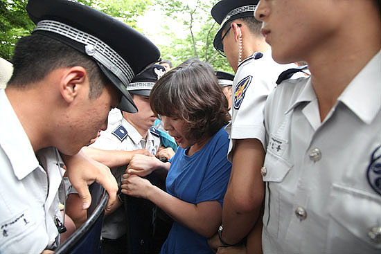 12일 오후 2시 김영훈 민주노총 위원장이 광화문 시민열린마당에서 무기한 단식농성에 돌입하기 위해 천막을 설치하려고 했지만 종로경찰서가 미리 집...