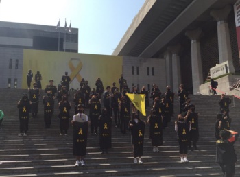 세월호 3주기를 하루 앞둔 4월 15일, 광화문 광장을 찾은 많은 사람의 눈길을 사로잡는 광경이 있었다. 광화문역에서 광장을 향해 난 길을 따라...