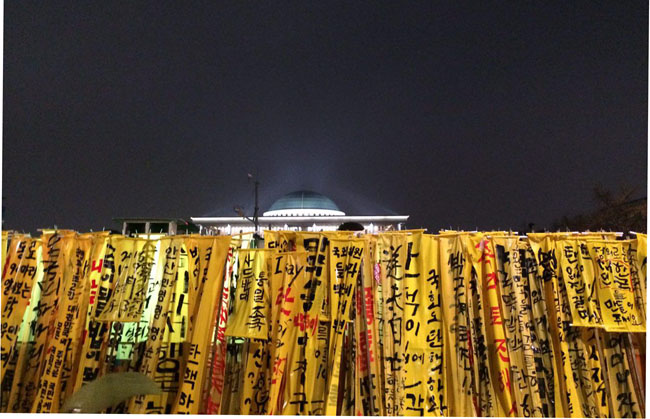 국회는 박근혜 대통령 탄핵 표결을 하루 앞두고 국민의 목소리를 모두 막았다. 약 5천 명의 시민은 오후 7시 여의도 산업은행 앞에서 ‘주권자 시...