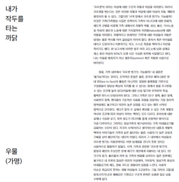 “저는 대한민국 대통령이 박근혜인 줄 알았어요. 실제 대통령은 최순실이더라고요. 우리나라는 대한민국이 아니라 순실국이었나요. 저는 순실국의 대학...