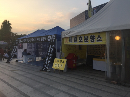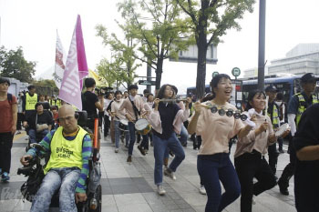 3만여 명의 시민과 노동자가 백남기 농민 추모와 성과연봉제 저지를 위해 1일 서울 대학로에 모였다. 이날 오후 4시에 열린 범국민대회는 백남기투...