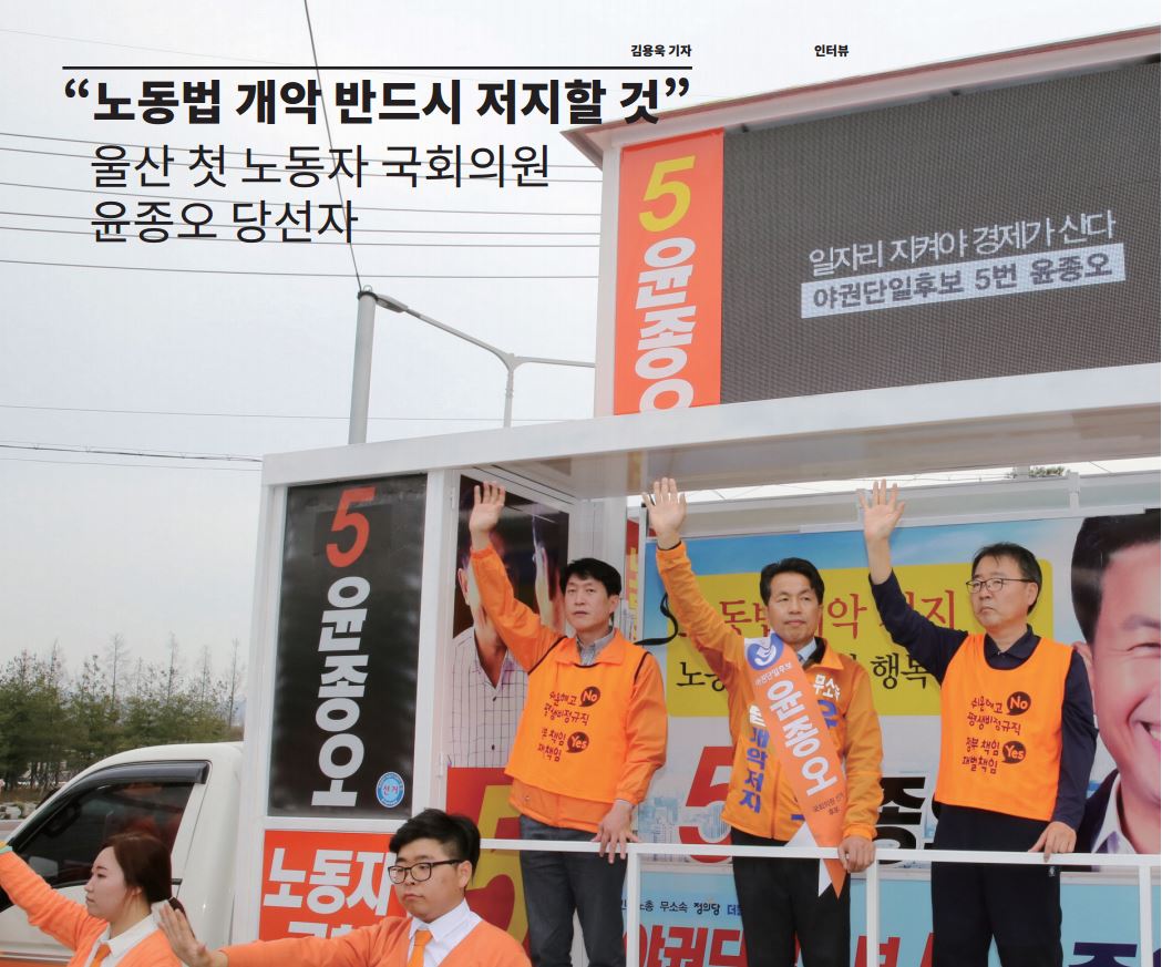 윤 당선자는 20대 국회 상임위로 환경노동위원회를 지원할 예정이다. 최우선 목표는 노동법 개악 저지다. 무소속이라는 한계를 어떻게 극복하느냐가 ...