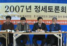 토론회는 2007년 사회, 경제 정세 전망과 대선국면 및 정치 정세 전망에 대해 각각 1부와 2부로 나눠 진행되었으며 민주노동당, 민주노총, 창...