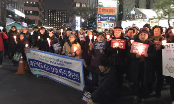 더불어민주당사 농성 6일째인 현재, 사드 배치에 반대하는 성주·김천 주민과 시민사회단체들이 촛불을 들었다. 주민들은 “국방부가 1월 중 롯데와 ...