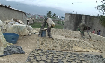 빼빼 마른 여성이 맨손으로 진흙을 치댄다. 손바닥 크기로 납작하게 빚어진 진흙덩이는 햇볕에 가지런히 널린다. 기왓장인가? 아니다. 아이티 빈민이...
