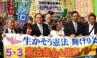 67차 일본 헌법기념일인 3일, 아베 정권의 ‘해석 개헌’에 반대하고 평화헌법을 지키기 위한 목소리가 전국 각지에서 울려 퍼졌다.