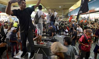 브라질 리우데자네이루 당국의 교통비 인상 방침에 맞서 시위대가 주요 역을 점거하고 통근 승객들이 무료로 승차할 수 있도록 승하차 시스템을 통제했...