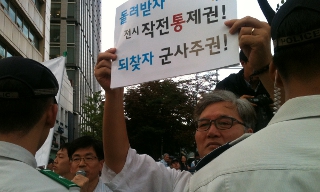 국군의 날 행사를 보기 위해 빽빽이 몰려든 인파 사이로 국군의 전시작전통제권을 환수해야 한다는 목소리가 울렸다.