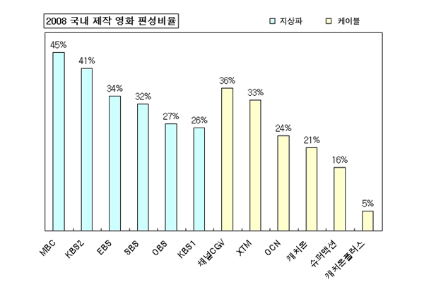 1년 동안 TV에 나온 한국영화는 얼마나 될까. 스크린쿼터문화연대는 지난 해 TV로 방영된 영화 중 국내제작영화 방영비율을 분석했다. 지상파 방...