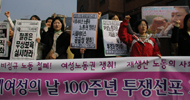 오전 11시부터 세종문화회관 앞에서 200여 명의 여성노동자, 사회단체 활동가들이 모여 △여성비정규직을 심화하는 비정규직법 폐기와 △여성의 빈곤...