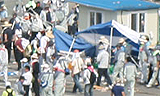 본관 뒷편을 통해 용역 300여 명이 들어와 도장공장과 본관 사이에 배치되어 있는 상태다. 현재 용역과 구사대는 본관과 도장공장을 에워싸고 있다...