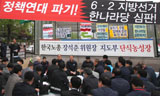 한국노총은 4일 노동부가 5월 6일로 예정된 근로시간면제 한도를 고시하면 즉각적인 한나라당과의 정책연대를 파기하고 6.2 지방선거에서 전조직적인...