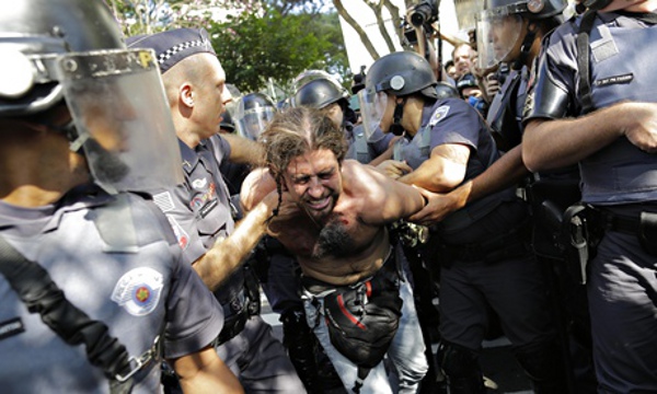 브라질 월드컵 개막일인 12일, 상파울루, 리우데자네이루, 브라질리아 등 최소 12개 도시에서 월드컵 반대 시위가 일어났다. 애초 21건의 시위...