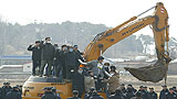 정부는 용역철거반원과 경찰을 동원해 평택 대추리, 도두리 일대에서 농지를 파헤치고 수로를 파괴하는 작업을 감행했다.