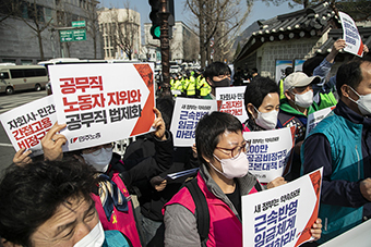 민주노총이 상반기 대규모 집회와 하반기 총파업을 통해 윤석열 대통령 당선인에 공공부문 비정규직 대책을 요구하겠다고 밝혔다. 민주노총은 22일 오...