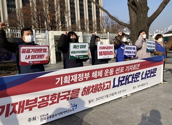 공공운수노조가 기획재정부를 사회 불평등 해결의 걸림돌로 지목하고 해체 운동에 나섰다. “기획재정부에 과도하게 집중된 권력을 실질적으로 해체하고 ...