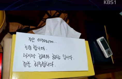 세 모녀는 절망의 마지막 길을 떠나면서 하얀 편지봉투에 “주인아주머니께... 죄송합니다. 마지막 집세와 공과금입니다. 정말 죄송합니다”는 유서와...
