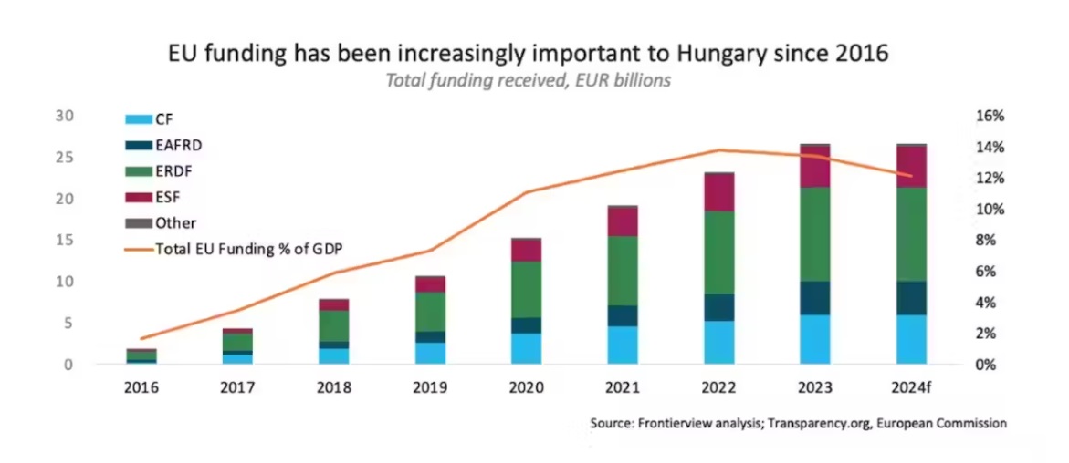 지난 3년 동안 EU는 헝가리 정부의 사법 및 언론 독립에 대한 공격동성애 혐오 및 인종 차별 정책행정부 구성원들의 만연한 부정부패로 인해 약 300억 유로의 자금을 동결했다.