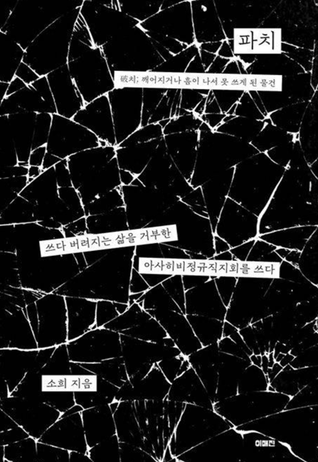 이번에 함께 읽을 책은 아사히비정규직지회의 9년에 걸친 투쟁을 다룬 책 ⟪파치⟫다. 이 책 표지에는 “파치(破치) : 깨어지거나 흠이 나서 못 쓰게 된 물건”이라는 설명이 적혀 있고 그 아래에는 “쓰다 버려지는 삶을 거부한 아사히비정규직지회를 쓰다”라는 부제가 적혀 있다.